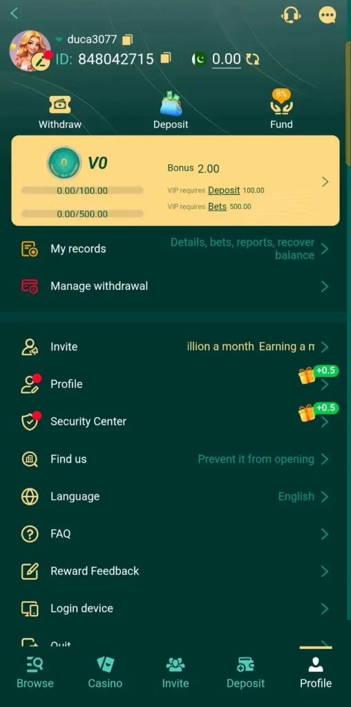 The app is designed for easy navigation. Even beginners can quickly understand how to play games, deposit money, and withdraw earnings.